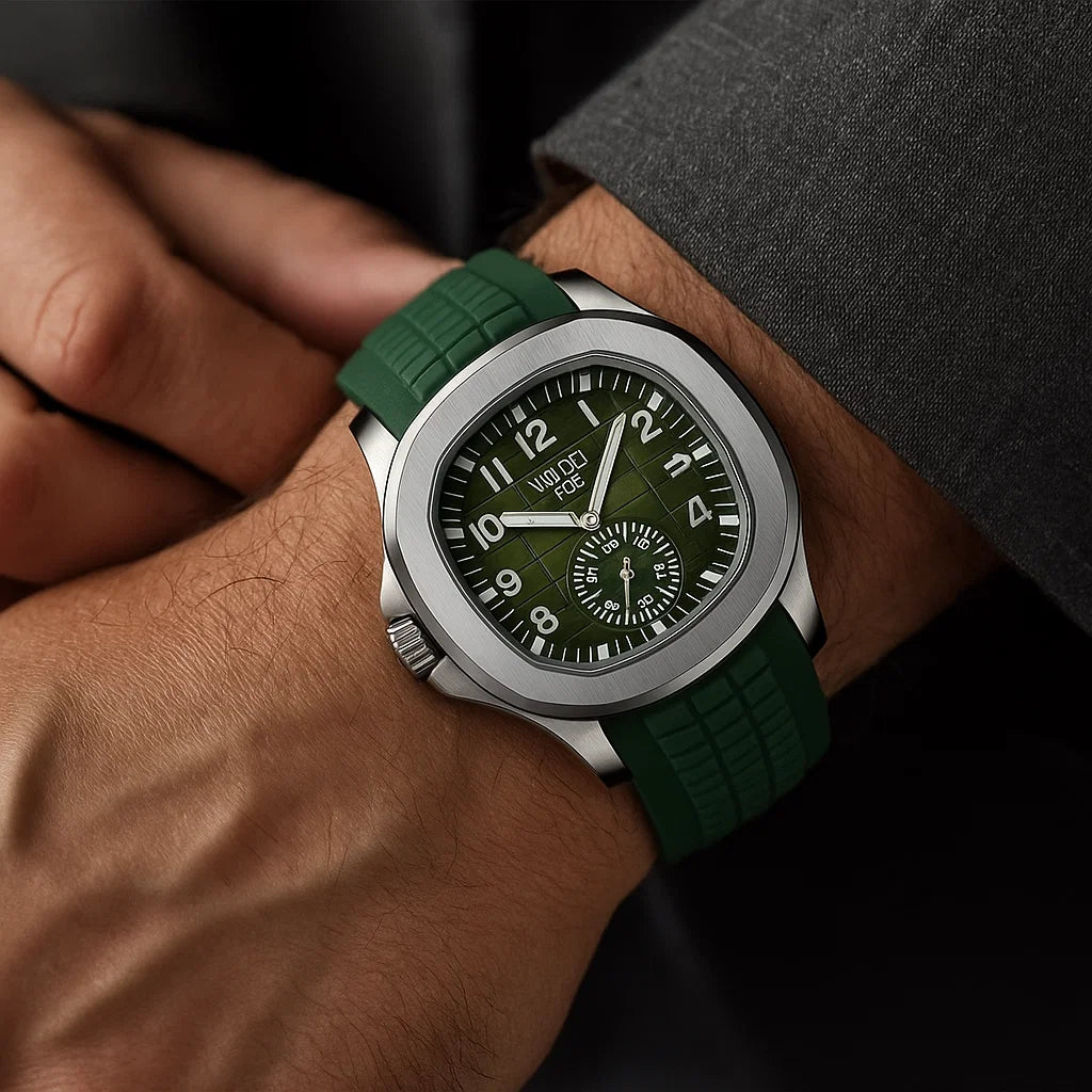 "AtlasPrime™ allie ingénierie moderne et esthétique élevée. De son affichage lumineux à sa précision de quartz lisse, il est conçu pour les hommes qui exigent à la fois style et force."