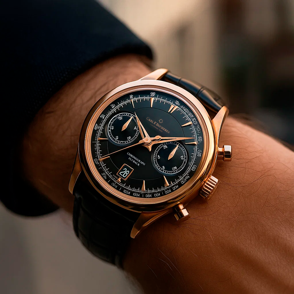 “MontreVie™ evokes the charm of old-world horology while embracing contemporary durability. With its deep dial, flyback-style layout and rich leather finish, it stands as a symbol of elegance and character.”